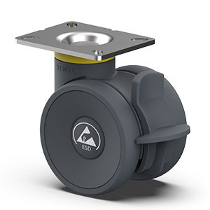 Spannungsspitzen, die für sensible elektronische Komponenten eine Gefahr darstellen könnten, werden durch den eigenen Innenwiderstand kontrolliert abgeleitet. Räder, die diese Anforderungen erfüllen, sind durch das ESD-Schutzsymbol Sie empfehlen sich für den Transport von empfindlichen elektronischen Bauteilen innerhalb der ESD-Schutzzone, die als EPA bezeichnet wird (electrostatic protected area).