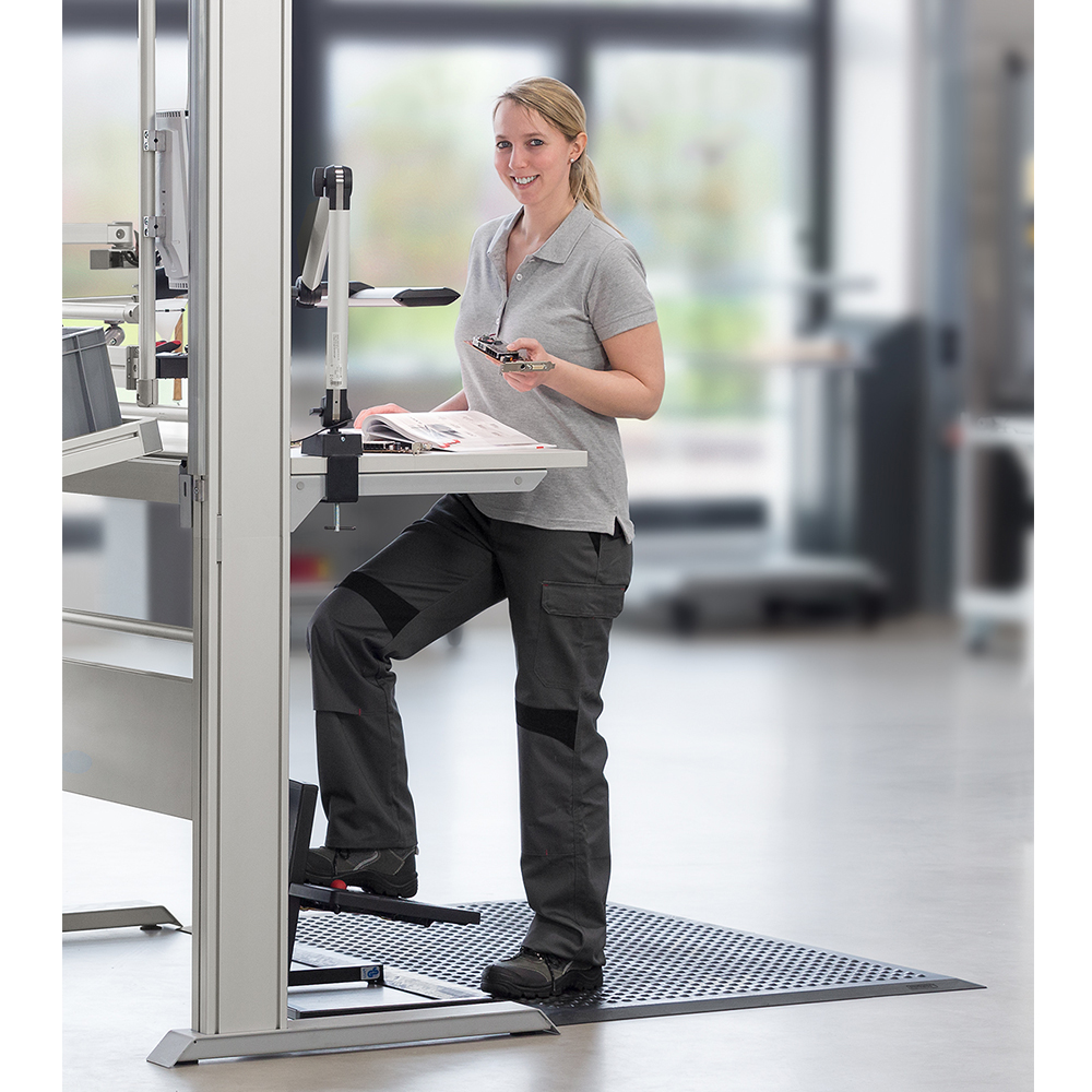 Das heißt, die Anti-Ermüdungsmatten sind so entwickelt, dass der Körper in natürlicher Weise schwingt und so die Bein- und Wadenmuskeln permanent leicht in Bewegung bleiben. Dies reduziert den einseitigen Druck auf die Bandscheiben und sorgt für eine ausgeglichene Belastung der Rückenmuskulatur: Die Wirbelsäule wird stabilisiert.