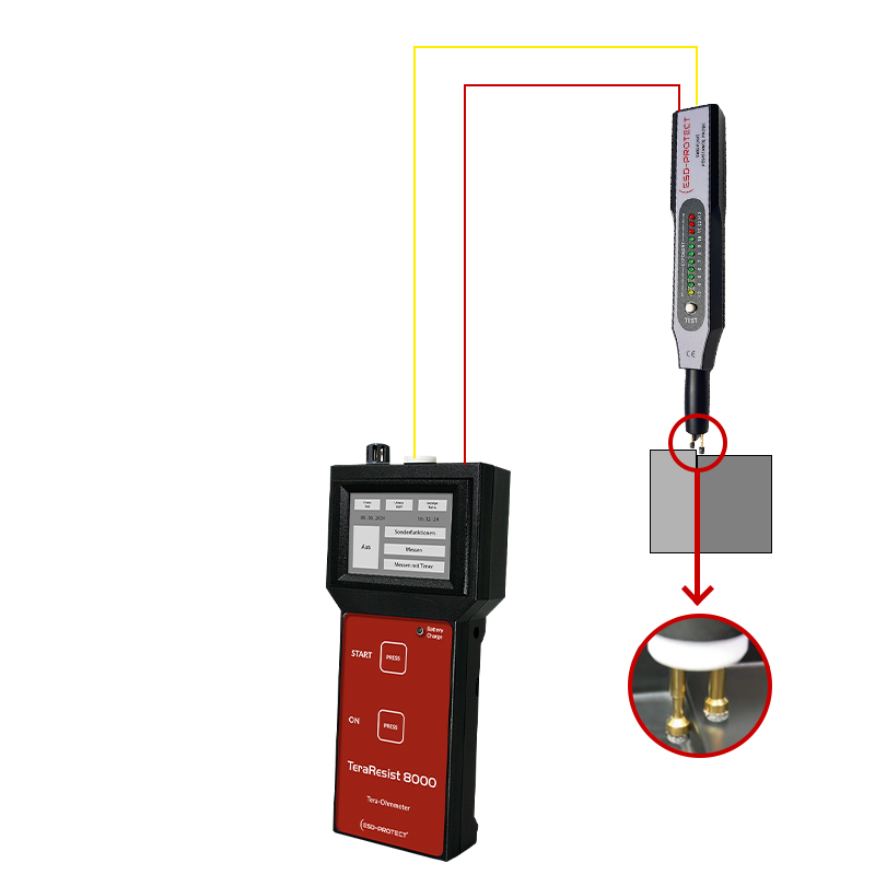 Daher gehören Widerstandsmessungen, neben den Feldstärke-Messungen, zu den wichtigsten Messverfahren im ESD-Bereich.