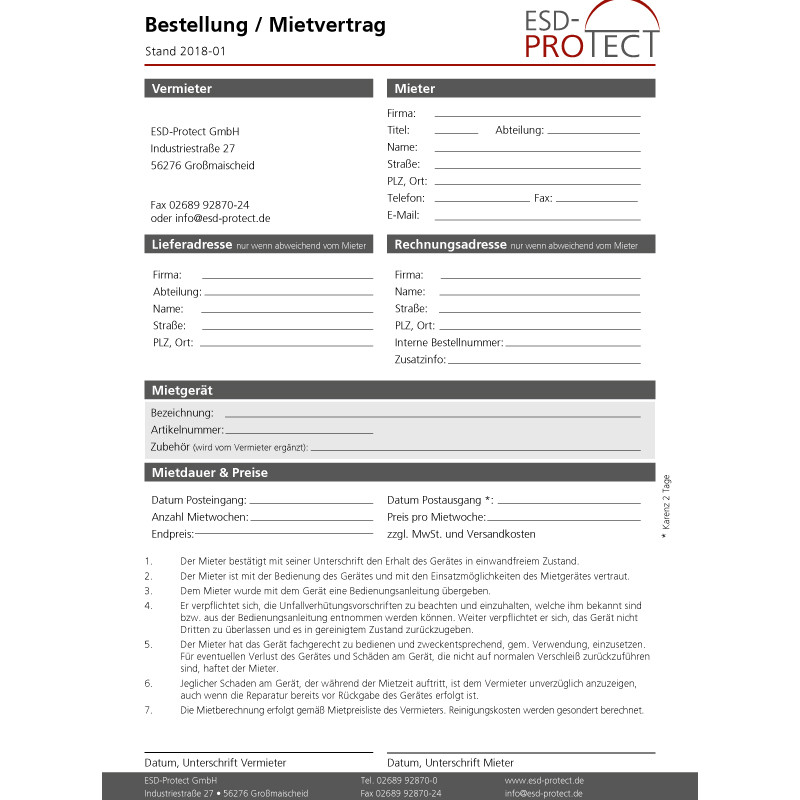 - einer wöchentlichen Miete von ESD-Messgeräten