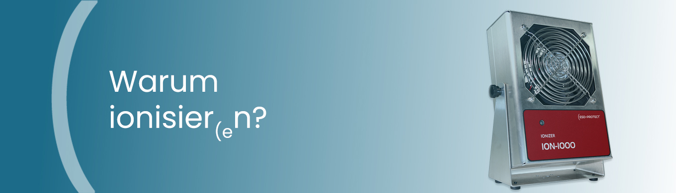 Es gibt verschiedene Typen von Ionisatoren. Lüfter und Stäbe. In ESD-Bereichen bzw. an ESD-Arbeitsplätzen werden in der Regel Gebläse/Lüfter genutzt. Durch die ionisierte Luft haben diese einen großen Ionisationsbereich in dem sie wirken. Außerdem können Gebläse-Ionisatoren weiter vom Prozess entfernt positioniert werden und stören nicht bei der Arbeit.