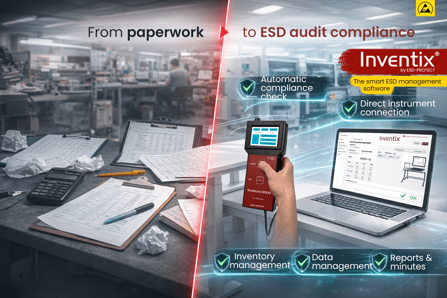 Inventix is a smart ESD inventory software for the digital management, monitoring and standard-compliant testing of ESD equipment and ESD workstations. With direct connection to measuring devices, fully automatic data collection, integrated standard testing and mobile app support, Inventix greatly simplifies ESD management.