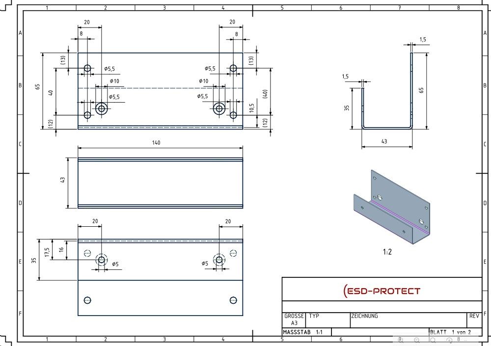 - Größe 140 x 43 x 69 mm mit Bohrungen